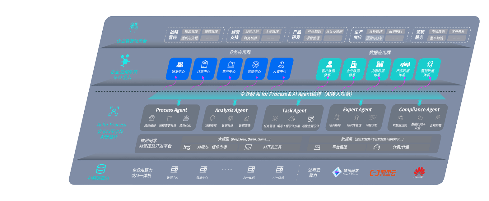 端到端的一站式AI工作空间深度融合了从企业战略规划到日常经营的全流程业务板块,,,定向解决车企内部领域多、、、、部门多、、、链条长、、、场景碎片化等难题,,,支持车企快速构建以AI为核心的生产力写作体系,,,实现任务执行与AI能力的无缝集成与交互